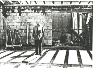 Hier sehen wir Ritter Kapitälchen auf der Baustelle. Er war der Architekt und Bauleiter. Leider schlug während der Bauzeit Oho erbarmungslos zu und schickte Ritter Kapitälchen am 26. Juli 1954 auf seinen letzten Ritt in die lichten Gefilde Ahallas. Doch sein Vermächtnis wurde vollendet: